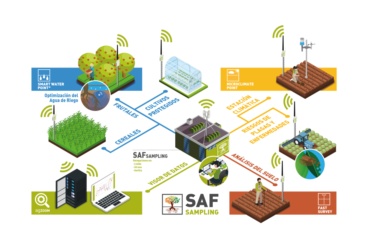 Soluciones SAF basadas en la instalación de “Puntos de Control” para la monitorización del agua del suelo y parámetros climáticos.